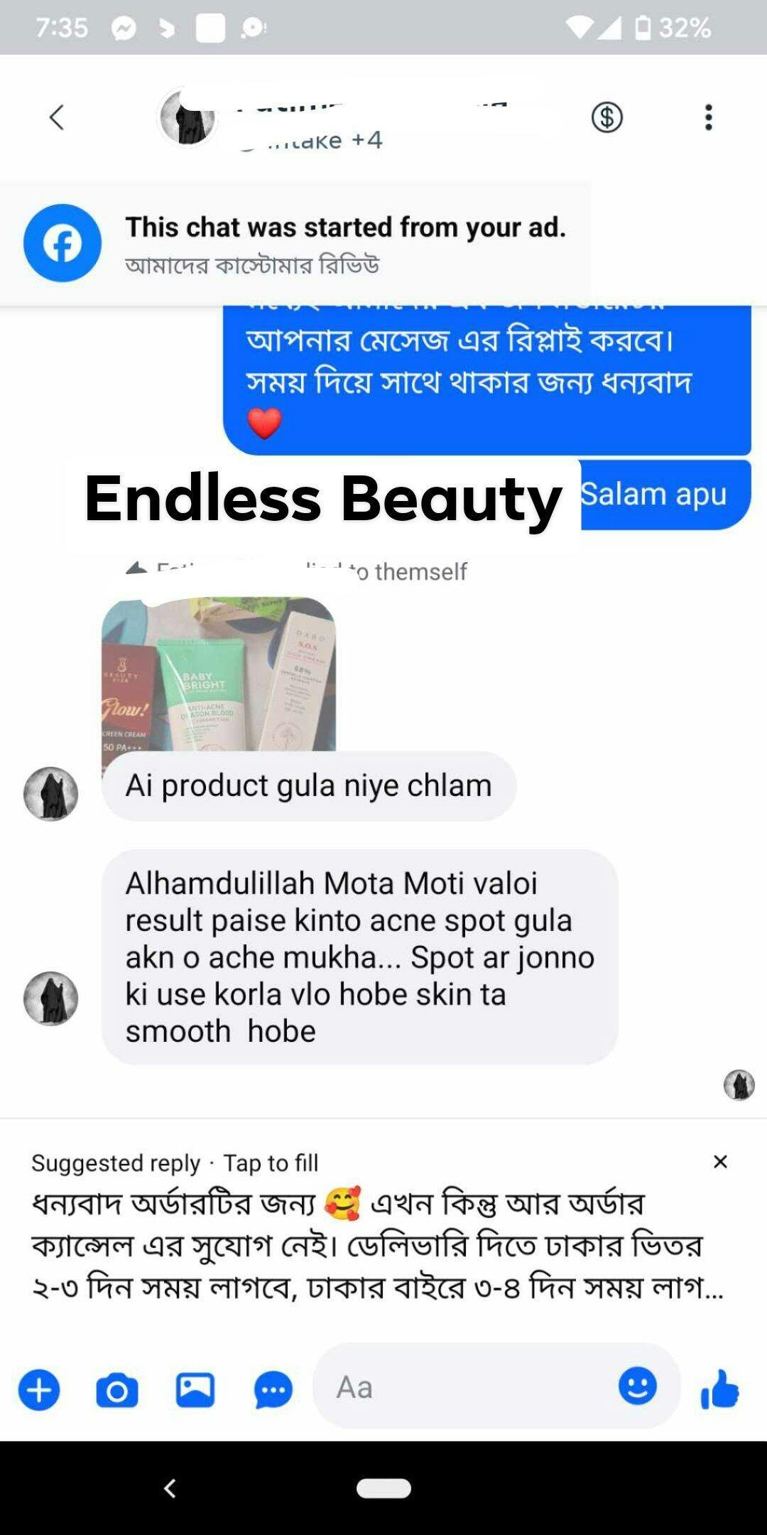 13.1 Customer satisfaction is our first preference. So, Endless Beauty makes every effort to meet the needs of its customers. However, if we fail to meet our commitment or supply the service for any reason, we will tell you through phone, text, or email within 24 hours. If Endless Beauty fails to perform a service and a refund is required, it will be processed within 7 days of our acknowledgment. Remember: Endless Beauty prefers to replace the goods instead of refunding due to lengthy process of refunding process.